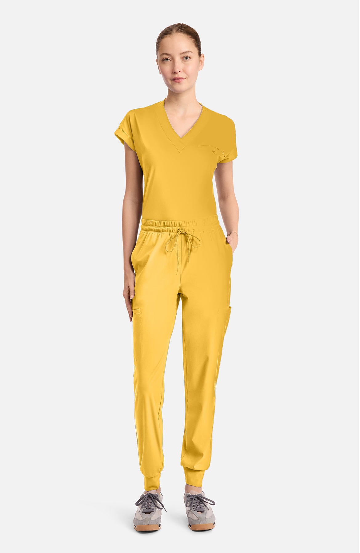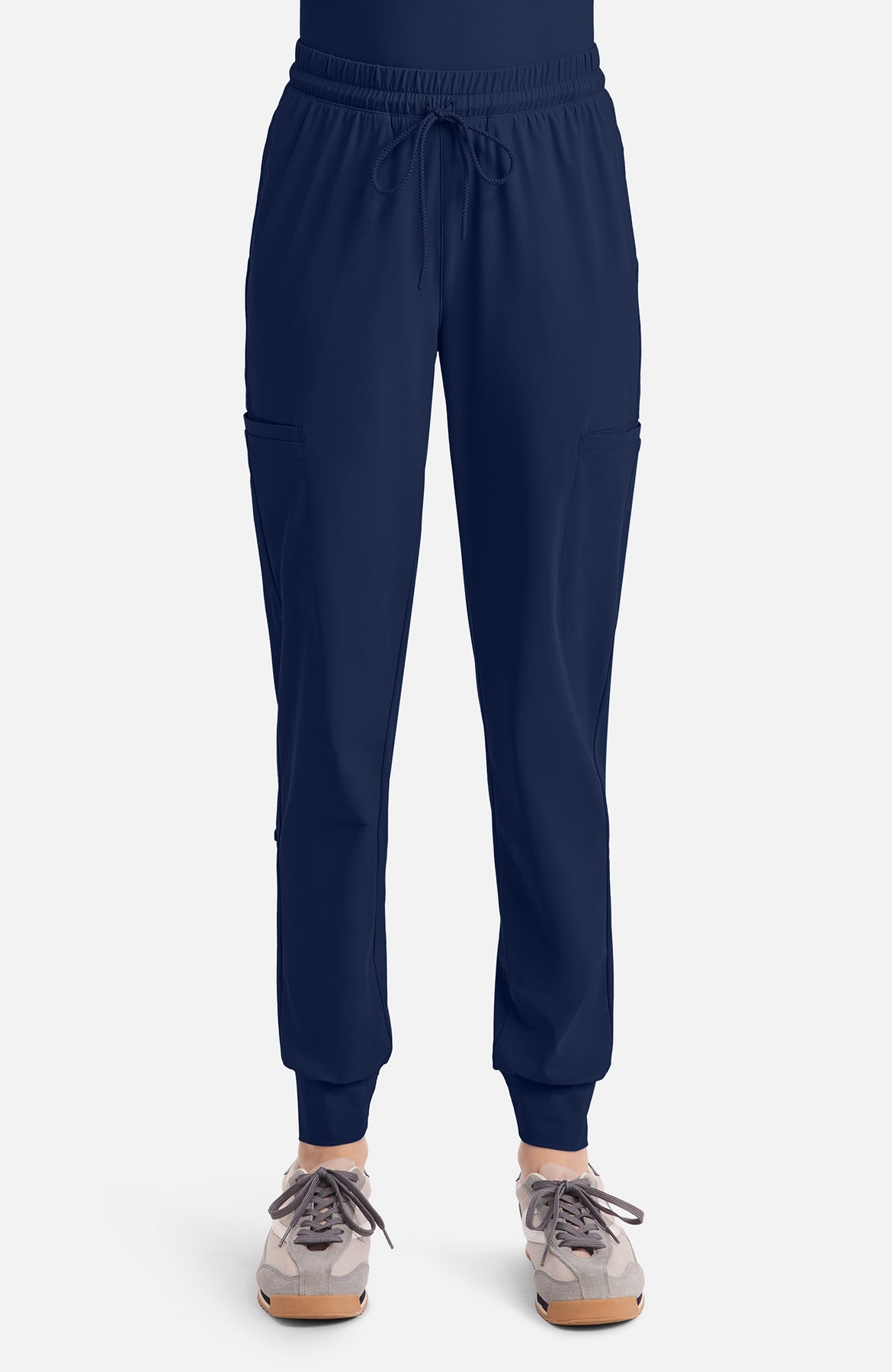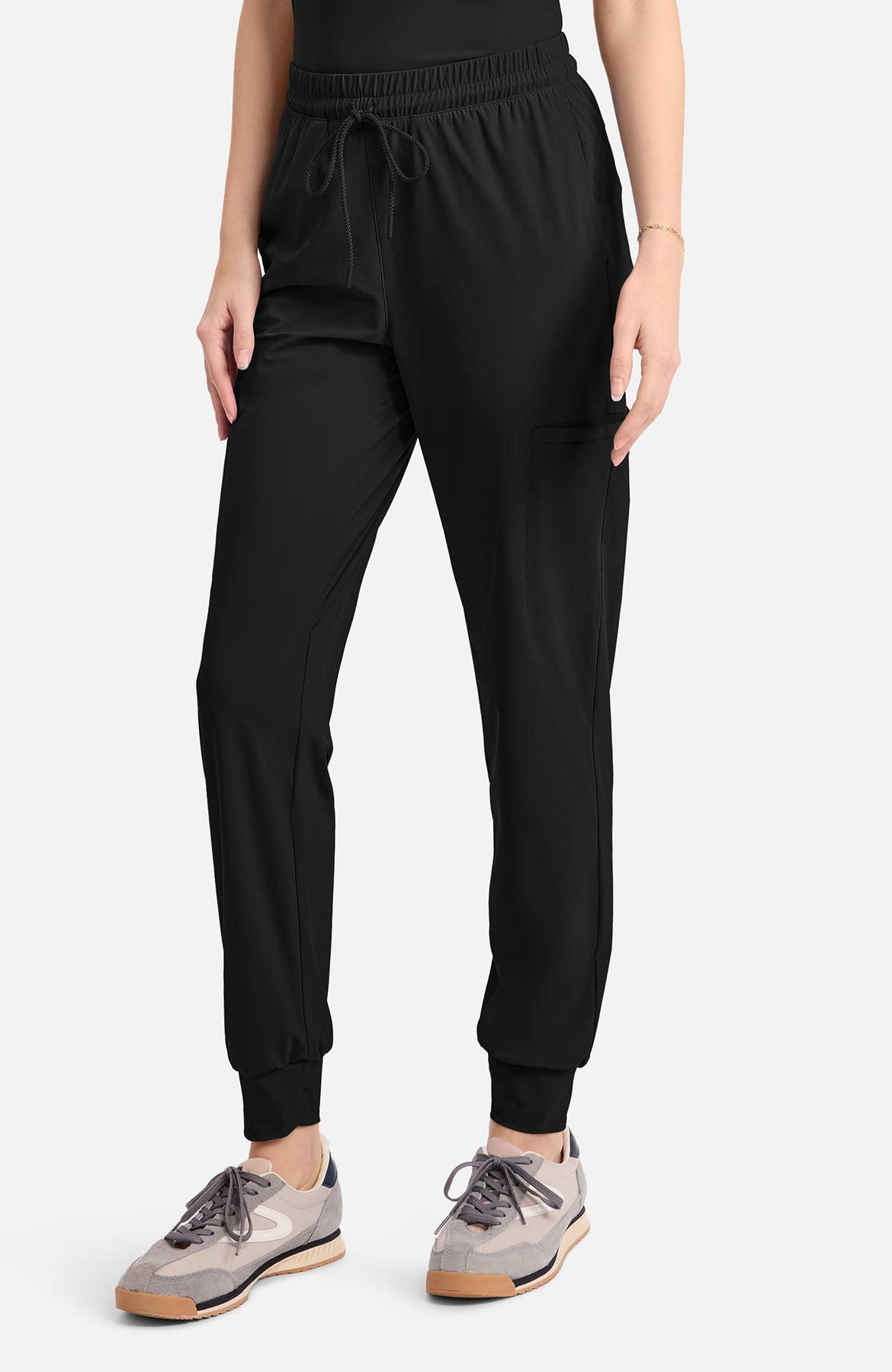 These contemporary-fit jogger pants combine style, comfort, and functionality for an everyday essential. Featuring a mid-rise elastic waistband with an adjustable drawstring, they offer a customizable, secure fit. The design includes five pockets: two side-seam pockets for easy access, two welt cargo pockets for added storage, and a back invisible zipper pocket for a sleek, secure finish. The self jogger cuff at the ankle creates a relaxed, tapered look, perfect for showing off your sneakers or casual footwear. Whether you're lounging, running errands, or on the move, these joggers provide a perfect blend of utility and modern style.