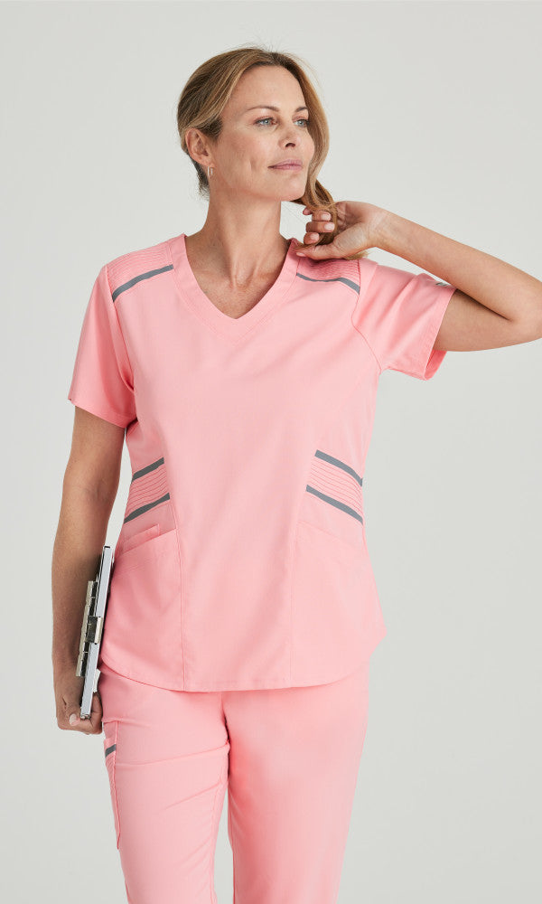 shaped V-neck moto inspired pin tucks,